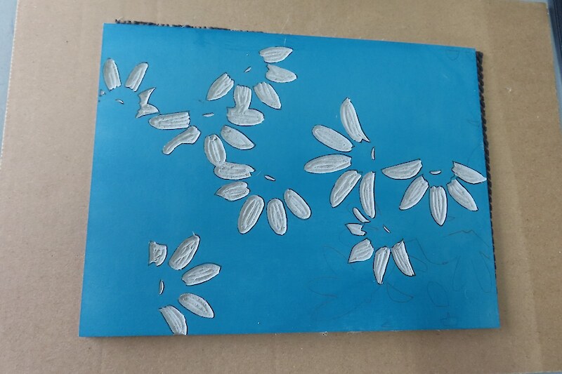 Then the hush descended and people got into the exercises that Jo had developed to get the process started. It all looks very concentrated and intense as peoples ideas formulated and then the cutting commenced and everyone is in their own world until snapped out of it by another Jo tutorial, another tip, another handy hint which makes the whole process come alive. Then to the inking and the use of the presses – a procession of works inked up then revealed with eager anticipation, like a photographers negative. Then layer on layer, colour on colour and by day two some beautiful works were emerging.