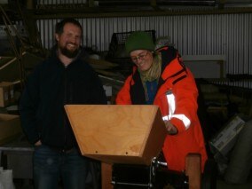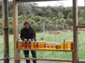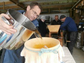 This years Apple Pressing on the afternoon of 19 April was another successful nursery event. Despite the aweful weather and a poor apple season, participants brought scrumped apples and made good use of Malcolm McKenzies apple press and the new education centre - with roof but no windows or doors!