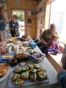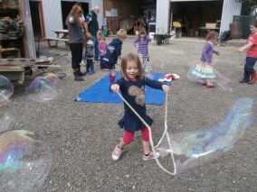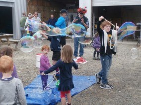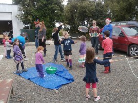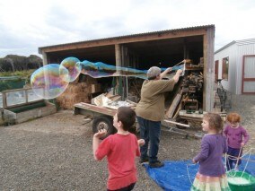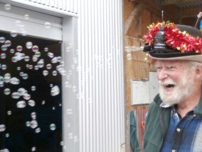 The final nursery volunteer Friday for 2013 was a very festive affair! The christmas tree was decorated, people brought a fine spread of food to share for morning tea and the “bubbleman” Alan Admore came with his marvellous array of bubblemaking devices.