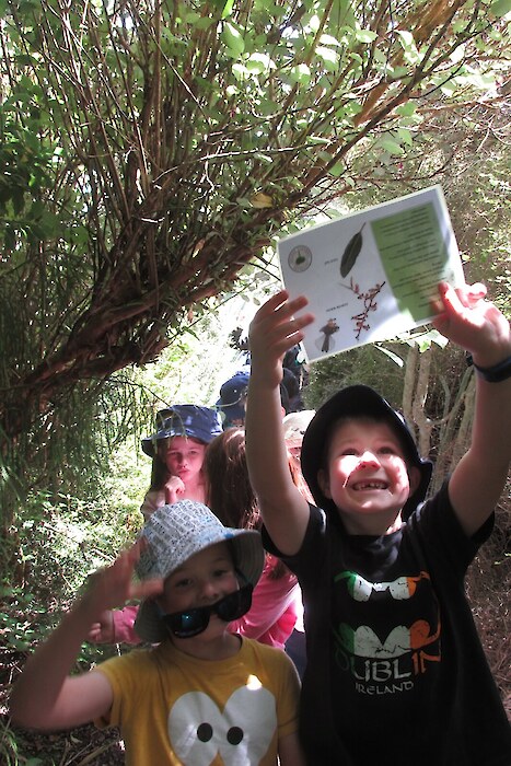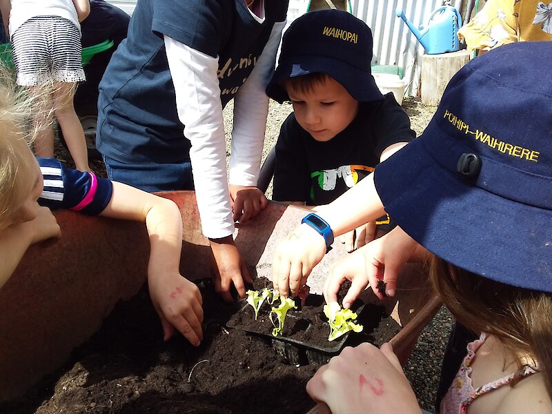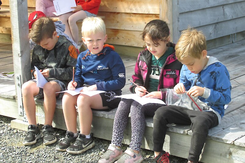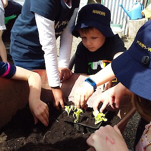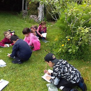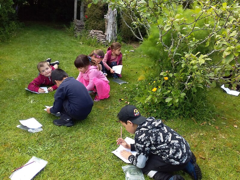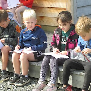 Plants that change their leaves, plants that grow flowers to attract pollinators and plants that smell nice were all experienced on a day long visit to the nursery. Plants that are edible, and our special NZ native plants were explored using our senses to learn all about how they grow. Different vege plants were spotted in the vegetable garden, lettuce seedlings were potted up and in the apple orchard the baby apples were spotted. We learnt about pollination by insects (such as bees, flies, moths and butterflies) and birds. Leaves were observed closely as the forest was discovered, and bugs from the pond were looked at. Meeting the pests, seeing what traps are around the property, and learning what damage pests can do in our forests and school back yards finished off an amazing day.