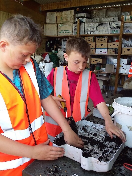 The weather hardy group biked to the community nursery meaning that our ‘car park’ was full of bikes on Friday from Donovan School. As part of their year5/6 camp they visited the Southland Community Nursery for some conservation action. Big thanks for your mahi potting up NZ native seedlings and planting out in the restoration area - the start of some new forest.