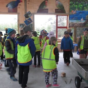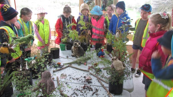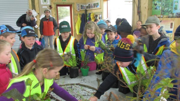 On Monday 19th October Limehills Schoolchildren with teacher Kathy Turnbull braved some terrible weather to undertake nature studies at the Education Centre. Luckily we had Mark Oster to encourage them outside, while Chris and Bronwyn lead the potting up activities undercover in the Education Centre.