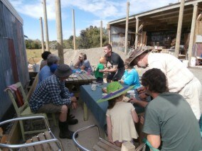 It was difficult to find a shady spot sometimes for morning tea! The backdrop to this location is the start of the Community Nursery Education Centre Building - watch this space for progress!