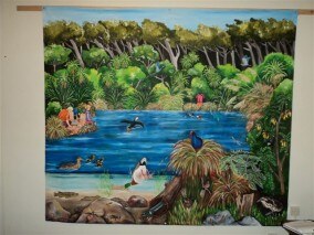Janet Hodgetts has been busy painting two of the tree murals that will grace the building - its an exciting time when our dreams and aspirations for the Nature Centre are coming to fruition.