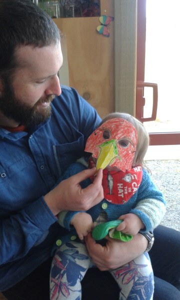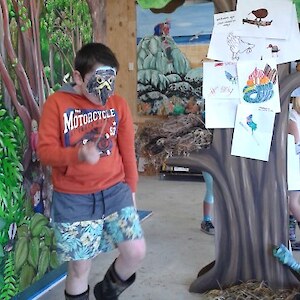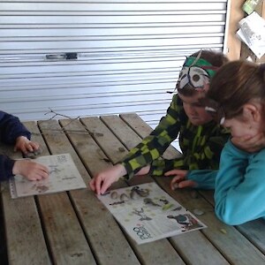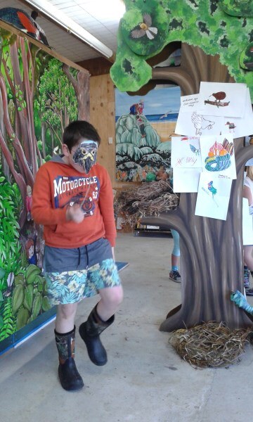 What a great time we had at the Southland Community Nursery learning about and being NZ native birds! We checked out the pond, spotting a white faced heron flying overhead while we were there. Then we transformed into birds with the awesome Landcare Research bird masks which we coloured in, learning about these species and spotting pictures of them around the Southland Community Nursery Education centre building. We played “Poo Power” seeing whether the kereru or the possum won! We went on a treasure hunt around the education centre using laminated picture cards to find the birds and finding out where birds live and made some crazy creatures from the tops and tails book. We attempted to put on a play about native birds, but more fun was had just pretending to be birds!!! We also got to view the amazing entries in our Bird Art Competition and present prizes to those there. Bronwyn