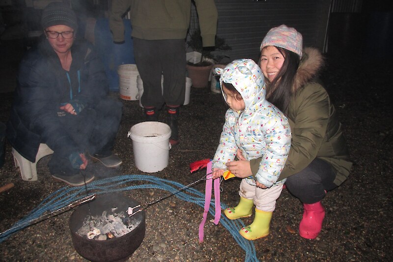 Around 30 children with their families attended and there were a number of activities planned at the Community Nursery. But first, as the sun was going down fast, we all rushed outside with kites, made or brought to run around the paddock – kites flying behind! It was a frosty calm night – not as much wind as we might have liked but no rain either, so we were happy. Inside the education centre more kites were being made along with making “fauna from flora” an idea inspired by Anna Star from Maud Island. After dark we all gathered round the fire pit to toast marshmallows – say goodbye to the old season and welcome in the new. This event was a chance for KCC members to farewell Bronwyn as she has finished up with the Southland KCC (Kiwi Conservation Club) https://kcc.org.nz/. We farewelled her with a gift from Southland Forest and Bird and welcome Duncan who is going to take over KCC trips into the future. For more inspiring ideas about Matariki see https://kcc.org.nz/te-iwa-o-matariki-the-nine-stars-of-matariki-promotion/