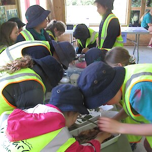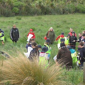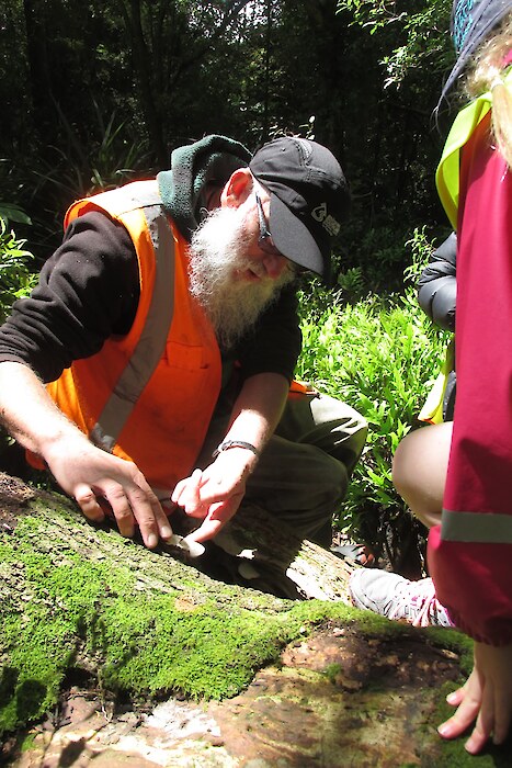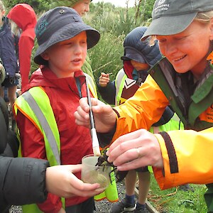 In the bush lots of ferns were found including hounds tongue fern, prickly shield fern and hen and chicken fern with its “baby” ferns attached. Some fungi, spiders and hoppers were found. The bush tracking tunnels didn’t have any tracks in them meaning the Rances are doing a good job on their pest control! One mammal was found though - a mouse in a pitfall trap! Piwakawaka (fantails) followed some groups and tui and bellbirds could be heard singing in the treetops.