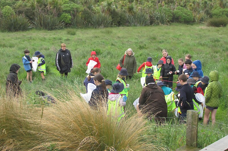 The aim of a bioblitz is to find as many different species as possible of animal, plant and fungi in an area. Students searched three different areas of the Rances property – the Kahikatea forest, the pond and restoration area and the paddock.