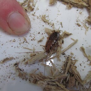 Some of the finds were as follows: Pond – koura (freshwater crayfish), tadpole, damselfly nymph, freshwater mites, back-swimmers. Restoration Area – lots of different plants, spiders, cockroach, unidentified caterpillars. One tracking tunnel had large scratchmarks (but no footprints) and the peanut butter bait had gone! A tui was drinking sugarwater from a flax flower at the pond and small ducklings were on the pond.