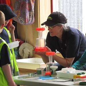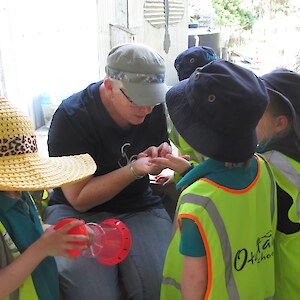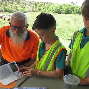 As with the Monday, students were divided into groups doing pond studies with Pat Hoffman (ES), Bush studies with Mark Oster and Walter (ES), Restoration planting area studies with Jesse Bythell (QEII) and Paddock studies with Lloyd Esler. Bronwyn, Linda and Chris were at Base Camp (The Education Centre) for identification of all the plants and critters found. There was lots of excitement as students searched high and low to find plants and animals and put them into their pottles to study at Base Camp. The glee and excitiement of finding something in your net or under logs was infectious!