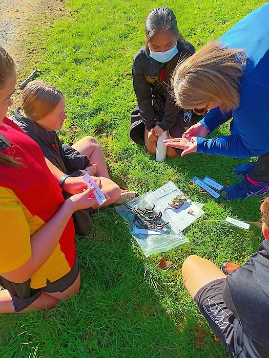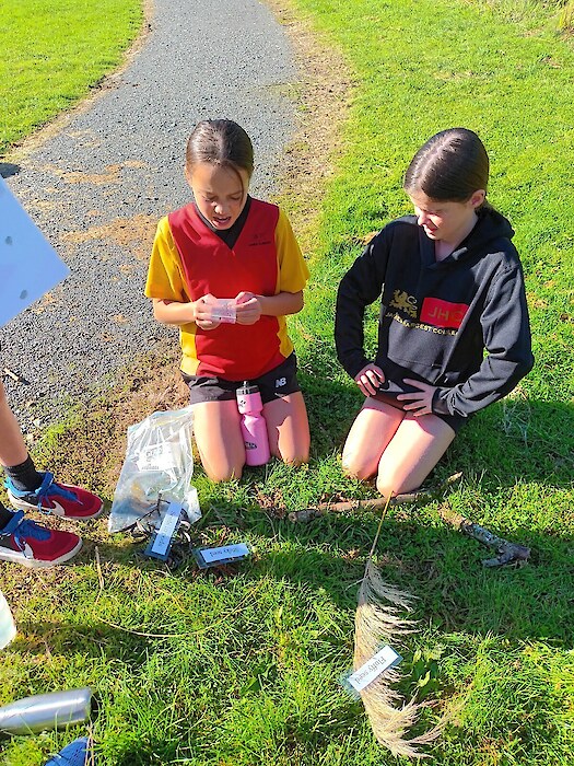 The Thomson Bush sessions with each class earlier in the week focused on the identification of NZ natives that are used in restoration plantings and learning about growing plants for restoration projects. We learnt that growing native plants from seeds is easy, once you can recognise what seeds you are wanting to source (for restoration we want nursery species of plants), how to prepare the seeds ready for sowing and what time of year to collect seeds! We noticed a number of different types of seeds in Thomsons Bush and looked at the restoration planting being undertaken there, noting the importance of eco sourcing seed and choosing the right plant for the right conditions here in Southland. The students were set the challenge of growing some native plants from seed (see the helpful instructions at School Activities • Southland Community Nursery) and taking home a pack of seeds eco sourced from the Southland Community Nursery.