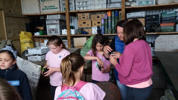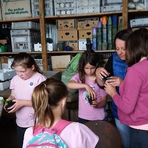 Windsor Brownies visited the Southland Community Nursery to learn about insects, gardening and birds. A quick look at the orchard and the vegetable gardens and the associated companion planting, talking about the importance of bees and other insect pollinators was followed by the ‘ooohs’ and ‘yucks’ looking at the worms in the worm farm. What a great job the worms do to help us with our gardening though! We then potted up some coriander seedlings and talked about what kind of plants can be planted in a garden, what some of the plants are that the girls plant at home (if any) and what care is needed for growing plants.