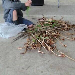 The potting up groups managed to pot up around 40 cabbage tree seedlings with enthusiasm! The young cabbage tree seedlings look like flax and are brown so quite different from the green trees seen around the pond that are flowering so well at the moment.