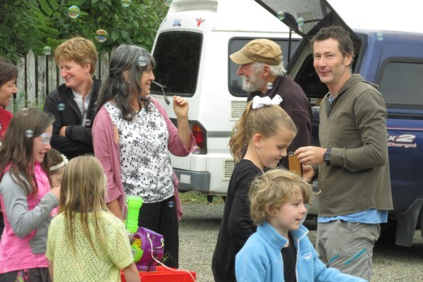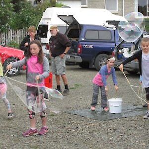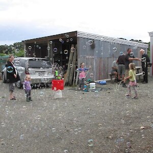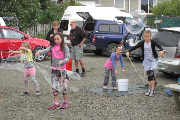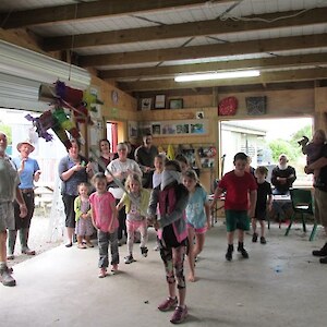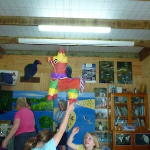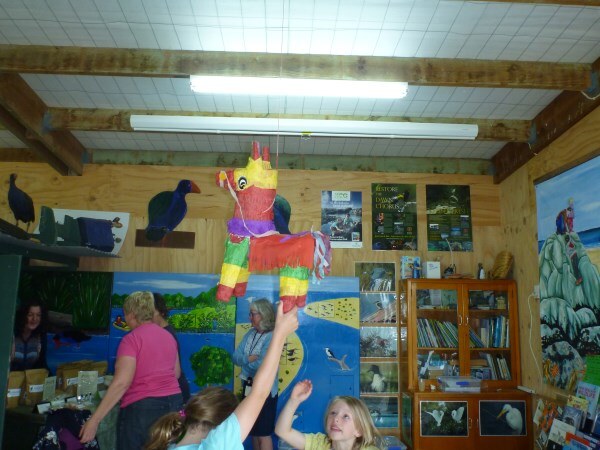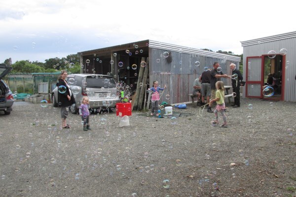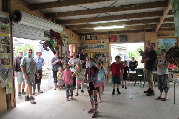 On the day there were lots of activities – largely self-directed – from making Mexican Christmas decorations, to weaving Christmas wreaths from natural materials, making flax flowers, making and sailing boats (again from natural materials), making giant bubbles with Alan Admore. The final event was the traditional Christmas pinata (with a less than traditional donkey design!) where the blindfolded children had fun trying to break it open – eventually Zade delivered the blow that spilled the contents for everyone to gather up!