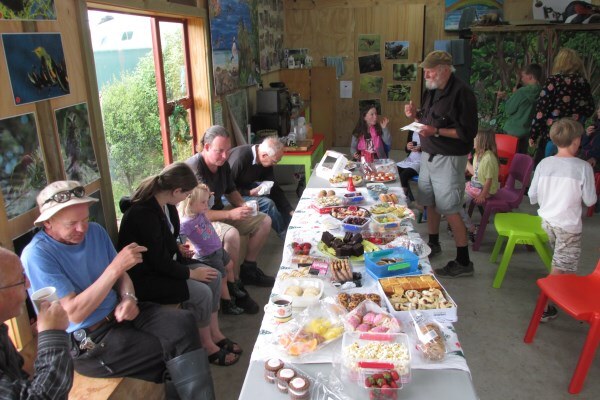 What a fantastic morning! Fourty-five people came to help celebrate another wonderful year at the Community Nursery. During 2017 over 1000 people, mostly school children, have come to the Nursery, lots of diverse workshops have been held (thanks to ILT Foundation funding) and Friday morning nursery volunteers have been as active as previous years. It’s estimated that around 8-10,000 native plants are grown and planted out each year, with volunteers taking plants away for their efforts and sale of plants to the public being the main source of funding for the general Nursery and Education Centre expenses.
