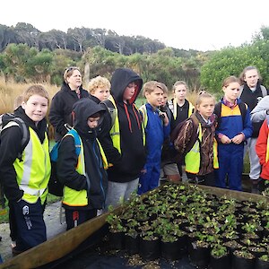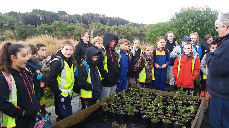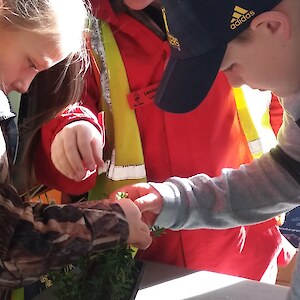 An enthusiastic group of year 6-8 students from Rimu School arrived with a plan – they wanted to learn all about growing native plants from seeds and cuttings. The large group was divided into two with Bronwyn taking a group around the bush and Chris taking the cuttings group.
