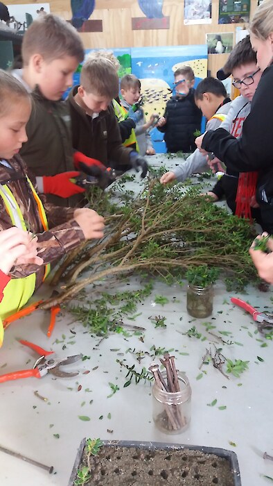 All together as a big group we acted out how a forest works and started to distinguish between colonising and canopy tree species, with colonising tree species growing up to provide the shelter needed to attract birds and to provide the environment needed for the big canopy tree species to grow. Learning about the different NZ native tree species and what ones are colonising or nursery species and what ones are canopy tree species will be important for any creation of a native area at the school. It was great to have this group of learners alongside us learning about the ways to propagate native plants. We look forward to hearing about their learning and what they might start up at school.