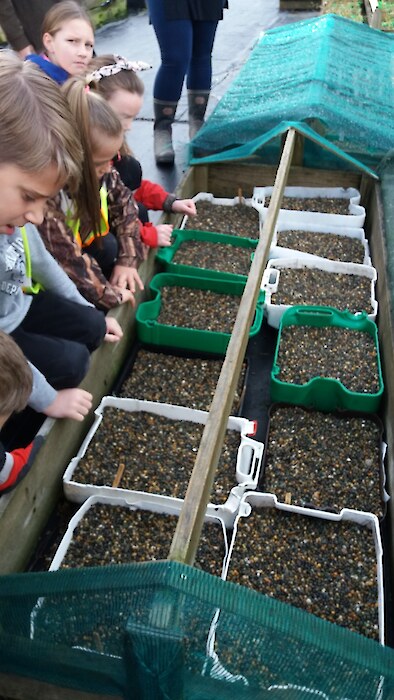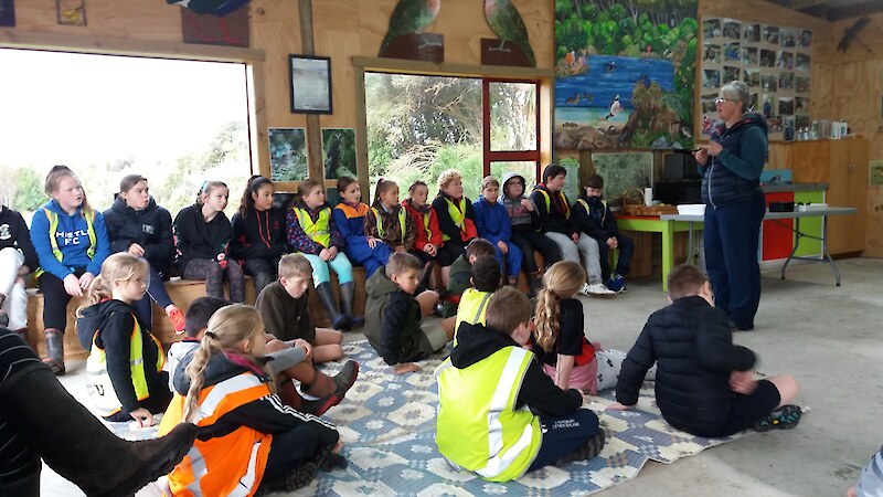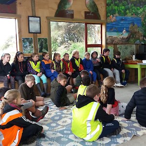 Bronwyn’s group went looking for and collecting seed. We looked at all different kinds of seeds - tī kōuka/ cabbage tree stripping the white fruit off the branches and squeezing out and counting the small black seeds; the sticky pittosporum species of seeds in pods, both kohuhu and tarata; the fleshy red fruits of kahikatea with the black seed on the outside that had collected on the shade cloth laid out on the forest floor; the cocoa bean lookalikes pōkākā seeds; the blueish fruit of mingimingi with two white seeds on the inside; the spores on the underside of fern fronds; the bright orange seeds of Astelia; the black seeds of harakeke in the big pods now mostly empty of seeds; the empty seed pods of Koromiko (Hebe salicifolia); broadleaf seeds, the hard small pods and seeds of mānuka, the shiny black round fruit of seven finger and many others - including some weeds. We talked about eco sourcing - collecting seed locally and the benefits of this, the need to identify what seeds you are collecting (as we really don’t want to sow weeds!!) and the need to identify NZ native plants, naming and dating the bags that you put your collected seeds into, the different preparation of different kinds of seeds (before sowing), colonising or nursery plants v canopy tree species and the seasons - noticing what seeds are around now to collect and what plants at this time of year have only empty seed pods or no seeds. We also looked at the recently sown trays of seeds in the nursery and the shade clothed protective boxes that we put them in and talked about the use of weed free seed raising mix and stones. Back in the education centre we looked at some other seeds including kōwhai and miro (and the link with kereru for this species of tree) that had been collected previously. We even talked about why there is no need to stratify seed in Southland for the species we were looking at because of nature doing this for us - some great discussion and questions from a switched-on group of learners.