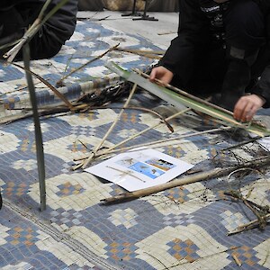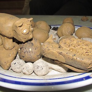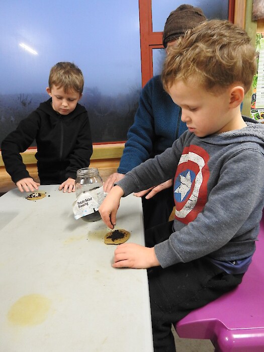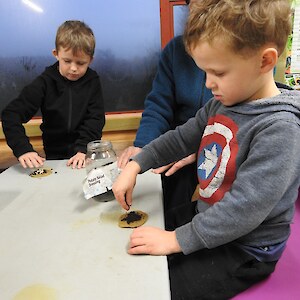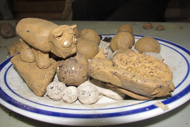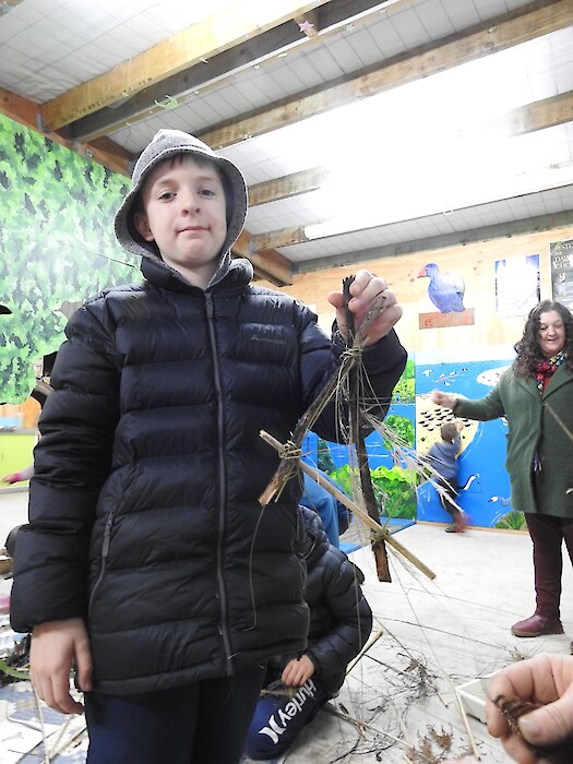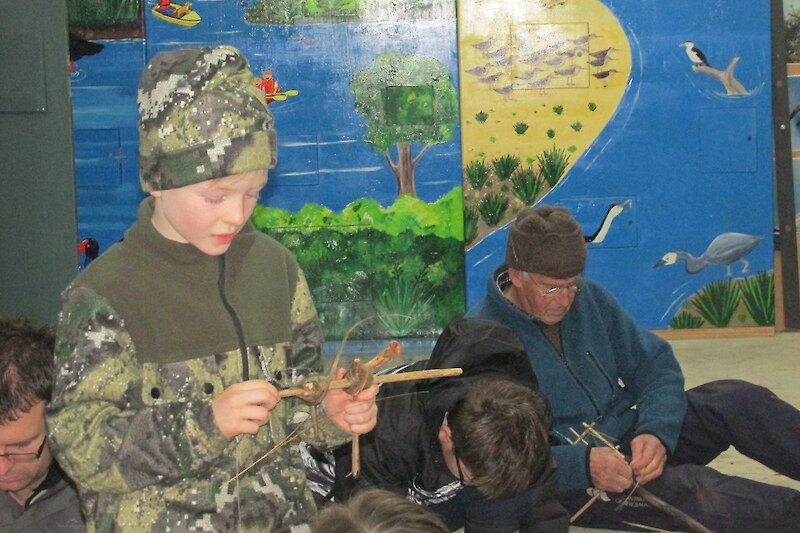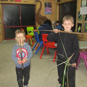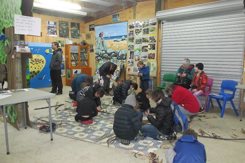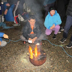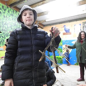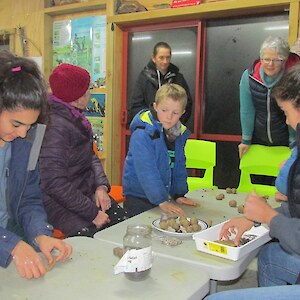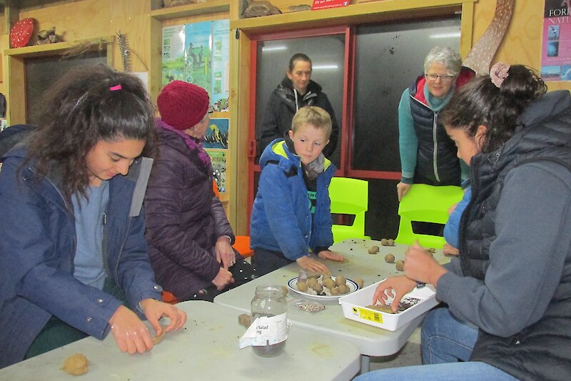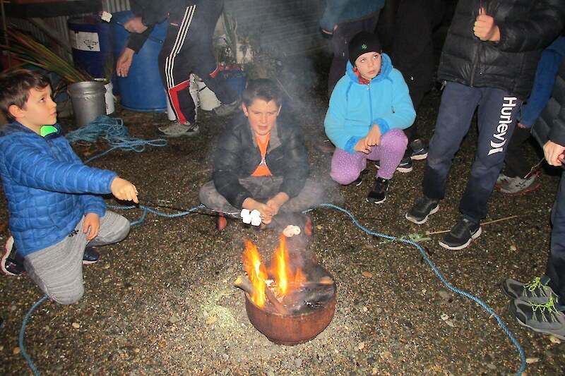 A cold clear starry night for Matariki celebrations saw us taking a close up peak at the nearly full moon through the telescope. 16 children from 2-12 years old (and a number of enthusiastic adults) explored and got stuck in with all the activities on offer. We made seed balls using mingi mingi (Coprosma proprinqua) seeds, flattening our clay, sprinkling some seeds (just like baking someone mentioned!) and then rolling up into a ball. Nature art (without sellotape, string, staples or the hot glue gun) inspired some wonderful creations of kites, brooms, dream catchers, birds and various throwing items. The challenge of making a circle, or tying bits together were approached with great thinking and problem solving. A quick rendition of the Matariki macarena before eating some kai, followed by the much anticipated toasted marshmallows squished between chocolate thin biscuits completed our fun night. Standing around the fire was warm and smokey!