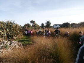 It was all action as Waiau Area School arrived at the Community Nursery. The group split into two groups – the first with Honorlea and Chris Mangion exploring the vegetable and fruit gardens and the second with Chris Rance studying the structures and facilities needed to set up a community nursery and garden. There was a lot of activity and enthusiasm as the nursery and garden were explored and ideas were put up on the whiteboard inside the Education Centre. After lunch in the Nature Centre the whole group followed Chris around the ponds and bush tracks, collecting seeds and learning about native plants and animal pests along the way.